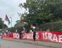مئات المتظاهرين المؤيدين للشعب الفلسطيني يهتفون خارج قاعدة جوية بريطانية